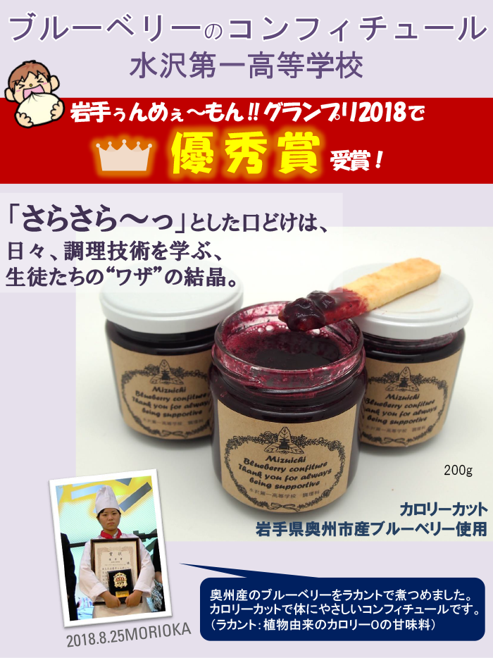 奥州産のブルーベリーをラカントで煮つめました。カロリーカットで体にやさしいコンフィチュールです。
