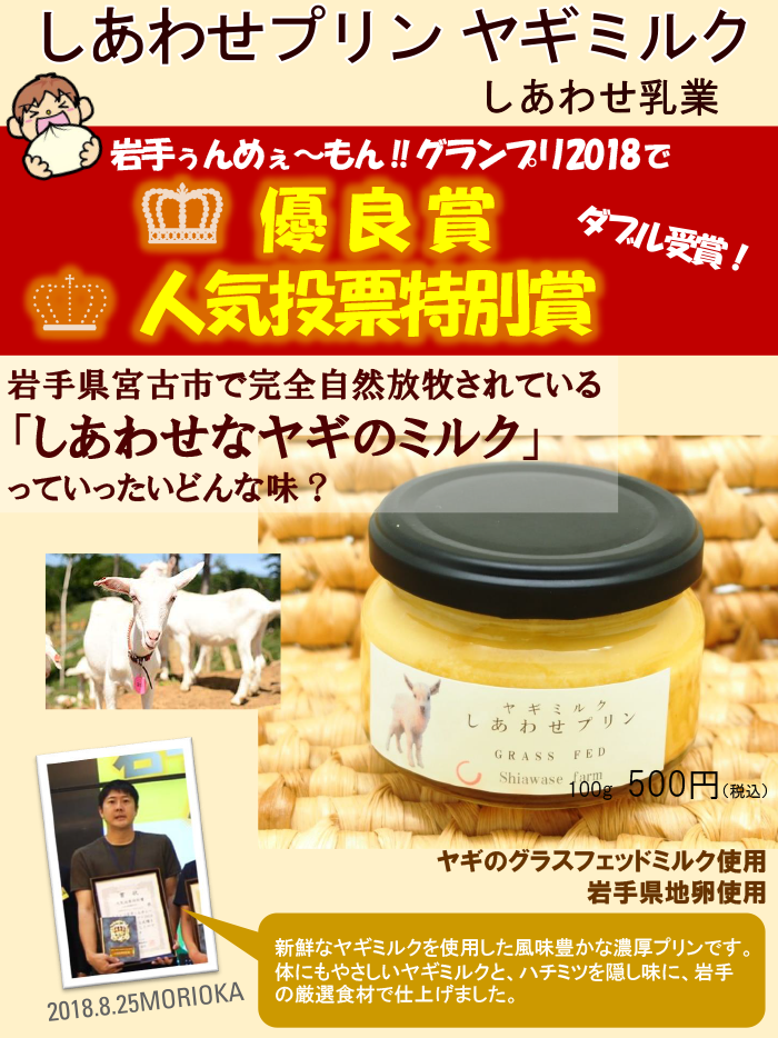 優良賞・人気投票特別賞 しあわせプリン ヤギミルク