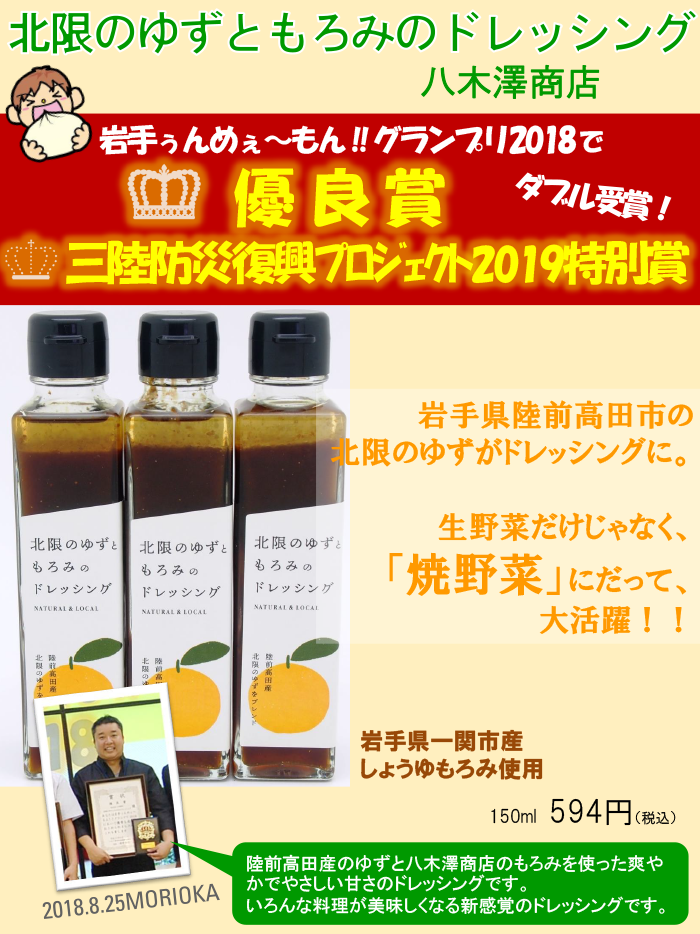 優良賞・三陸防災復興プロジェクト2019特別賞 北限のゆずともろみのドレッシング