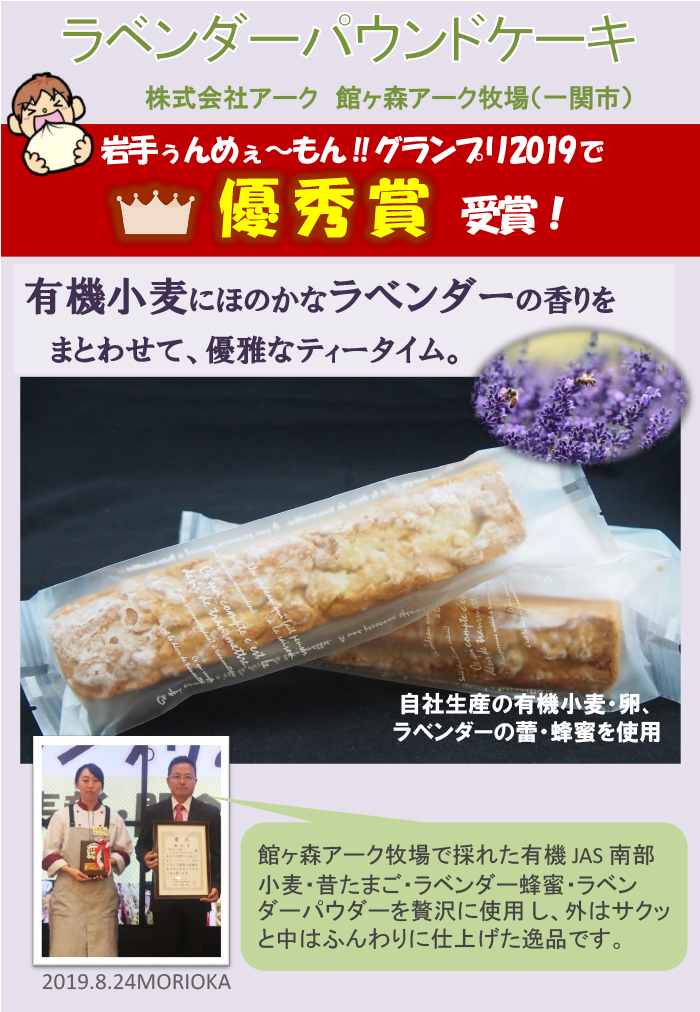 館ヶ森アーク牧場で採れた有機JAS南部小麦・昔たまご・ラベンダー蜂蜜・ラベンダーパウダーを贅沢に使用し、外はサクッと中はふんわりに仕上げた逸品です。