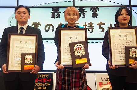 表彰式では、最優秀賞、優秀賞、優良賞のほか、「いわてモー!モー!プロジェクト2021」の一環として『モー!モー!特別賞』を授与しました。