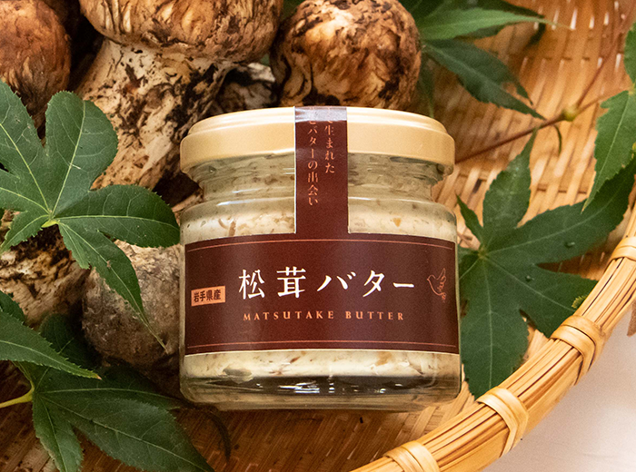 昨年松茸の加工に携わった際”ハジキ”の部分が出てしまい、もったいないと思いました。その“ハジキ”の部分は乾燥してパウダー加工しました(盛岡アビリティーセンター)。フレッシュな松茸と合わせてダブル使いする事により、松茸の風味を増し、バターのコクと合わせて味に深みを出しました。原材料全てを岩手県産にこだわって作ったプレミアム商品です。ごはんにのせたりパスタを和えたり肉や魚のソースにしたりと使い方は様々です。