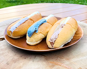 岩手県産生レーズンを県産の赤ワインで炊きあげ、くちどけの良い軽いバタークリームと合わせました。クッキー生地はヤギミルクと県産小麦ゆきちからを使用した食感の良いバタークッキーに仕上げ、レーズンクリームをサンドしています。