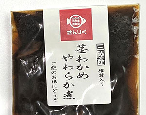 岩手県産の肉厚茎わかめを使用し、椎茸と醤油で丁寧に炊き上げました。ご飯のおかずやおつまみに合うよう、甘さの中に生姜の香りがするように味付けしました。