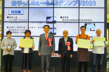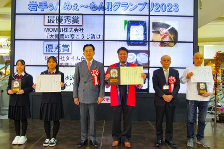 表彰式では、最優秀賞、優秀賞、優良賞のほか、特別賞として、規格外品や未利用部を活用した加工食品に「SDGs賞」、岩手から世界に発信したい加工食品に「 uNMEe∼MON !!賞」、食品添加物未使用など子供から大人まで親しめる加工食品に「食育賞」を授与しました。