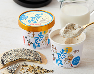 岩手県北久慈地方産の生乳「ゆめ牛乳」を100%使用。濃厚でコクのあるミルク味のアイスクリームに3mmに刻んだごませんべいを合わせました。搾りたて「ゆめ牛乳」のリッチで芳醇な味わいと、シンプルながら味わい深い南部せんべいの組み合わせをしっかりと堪能して頂ける、新しいご当地アイスです。