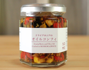 岩手県盛岡市砂子沢地区の特産品アロニアを使用した新商品です。アロニアの渋みを緩和し、美味しく味わえる調理方法としてヨーロッパの伝統調理法「コンフィ」を参考にオリーブオイルと蜂蜜・その他木の実と混ぜて漬け込みました。アロニアの強みである「美」と「健康」イメージを活かしつつ融合させ、贅沢な日常やギフトとして使用いただけるよう、開発をしました。