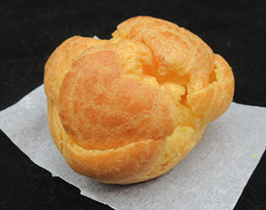 花巻市特産の規格外の食用ほおずき(ゴールデンベリー)を使用し、地域資源を有効活用しました。認知度が低い食用ほおずきの認知度アップに貢献し、生産者を後押ししたいと考えています。甘さ控えめで甘酸っぱさが特長のシュークリームです。