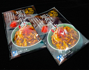 岩手県産短角牛肉をたっぷり使った牛丼の素です。原材料は牛肉、玉ネギ、しらたき、醤油(浅沼醤油店製)、きび砂糖、といたってシンプルですが、食材の旨味タップリな、いわゆる無添加の牛丼です。