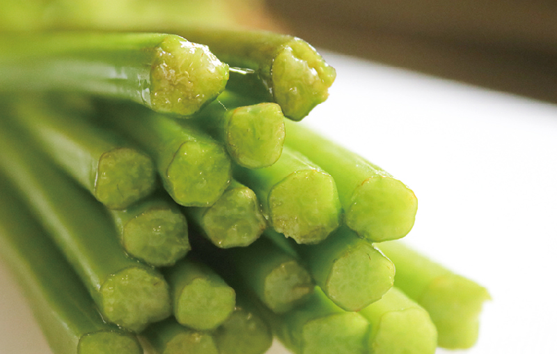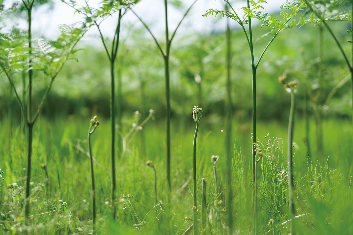 西和賀町は奥羽山脈のほぼ中央に位置し、豪雪地帯として知られる。肥沃な土壌は、春になると強い日差しを受けて雪解け水が染み込んで発芽を促す。養分をたっぷりと吸収したわらびは、茎が太く、繊維が柔らかくて、ねばりが強い。色合いが鮮やかで、アクが少ないのも特徴だ。「西わらび」のブランド名で人気を集めている。