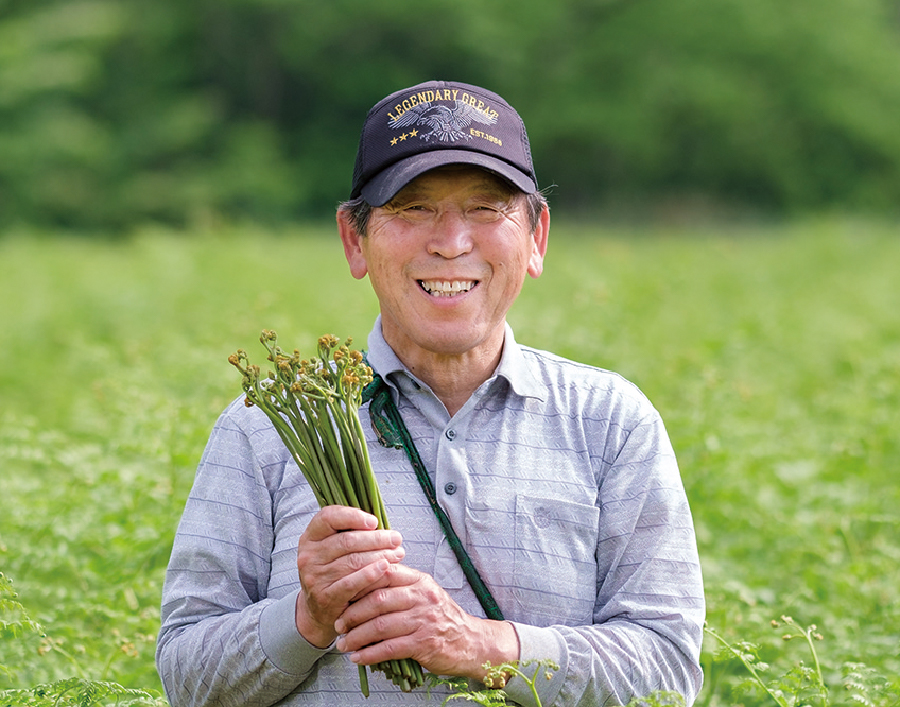 岩手県和賀郡西和賀町出身。1947年生まれ。農山漁村文化協会に勤務後、38歳で地元・西和賀町にUターン。町役場に56歳まで勤め、2001年からわらび作りを始める。西和賀わらび生産販売ネットワーク会長。