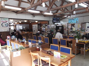 道の駅おおのに隣接する「食の舘」は、ドライブ途中の食事などで連日たくさんの人で賑わっています。地元洋野町育ちの純和鶏赤鶏をふんだんに使った道の駅おおのオリジナルの赤鶏ラーメンは、そぼろ、チャーシューに赤鶏を使用し、イチオシの人気No.1メニューです。