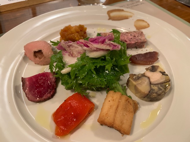 - 三陸あわびツブと洋野町あわび茸のブルゴーニュ、久慈柿木さんの短角牛トリッパとチョリソーのトマト煮込み、龍泉洞黒豚真二郎厚切肩ロースの低温ローストメリメロソース、つるし熟成短角牛のミニッツステーキエシャロットソース