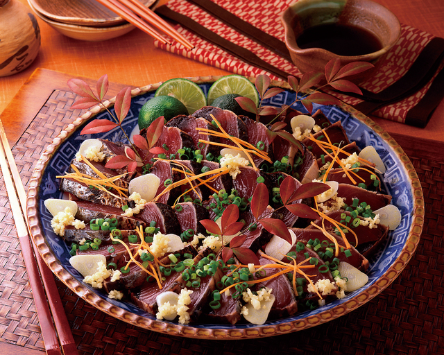 岩手の夏を代表する魚です。特においしさが際立つのは、秋口に北方から三陸沖へ南下してくる戻りガツオ。暖流と寒流が合流する豊富なえさ場が三陸沖にあるため、丸々と太り脂ののったカツオが水揚げされます。刺身やたたきのほか、ハラス焼も美味です。
