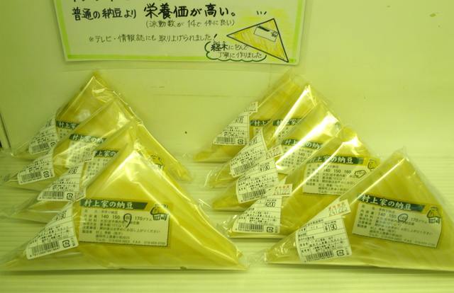 豆の香り豊か 村上家の「手作り納豆」(上鹿妻の産直 あいさい舘) | 盛岡市 | 加工品(農畜産物) | 岩手県内産の大豆使用、オゾン水を使い雑菌を取り除いています。普通の納豆よりも栄養価が高い!そして、昔懐かし経木にて丁寧に... |