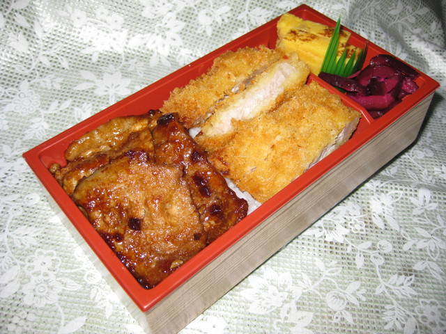 「いわて発」大地の恵弁当(白金豚弁当)(ピーコック・トレテール) | 矢巾町 | 地産地消弁当 | ・花巻市で生産された白金豚を使用した焼肉弁当(和風ソースしょうが風味)と白金豚のとんかつを自家製のタレで味付けし、ミック... |