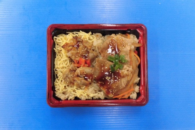 いわてW焼肉重(株式会社 岩手米飯) | 花巻市 | 地産地消弁当 | 岩手県産のひとめぼれを使用した醤油風味ご飯に県産鶏のもも肉、豚肩ロース肉をてりだれで焼いた2種類の肉の味を入れたお弁当。... |