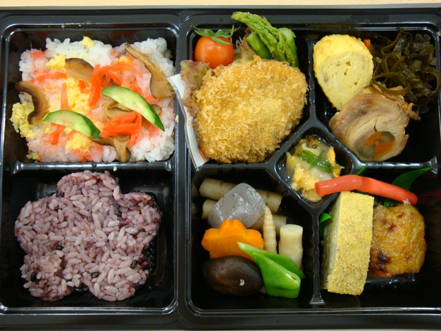 四季彩弁当~展勝地子唄~(株式会社 クッチーナ) | 北上市 | 地産地消弁当 | ・原材料を県産100%使用して、主に北上の食材を弁当に詰め込みました(雑穀米コロッケ・北上コロッケ他)... |