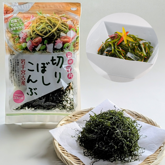 岩手県宮古産 切りぼしこんぶ(岩手県食料品水産加工業協同組合) | 宮古市 | 水産物・水産加工品 | 「食べる昆布です」 岩手県宮古沖のきれいな海で育った昆布を湯通しし、千切りにして乾燥しました。お湯で約5分戻すと、緑が... |